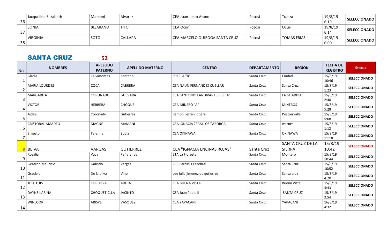 | 3 | Desarrollo de la 12° versión "Encuentro plurinacional de investigación e innovación de institutos Técnicos y Tecnológicos (sujeto a programa especial) | 03/09/2019 - 05/09/2019 |